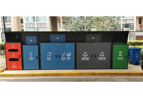 1、铁制五分类垃圾桶身用1.2mm厚,门用1.5mm厚镀锌钢板经激光切割、剪、折、弯等精加工钣金工艺制作成型,表面经静电喷涂专用户外粉高温烘烤而成。